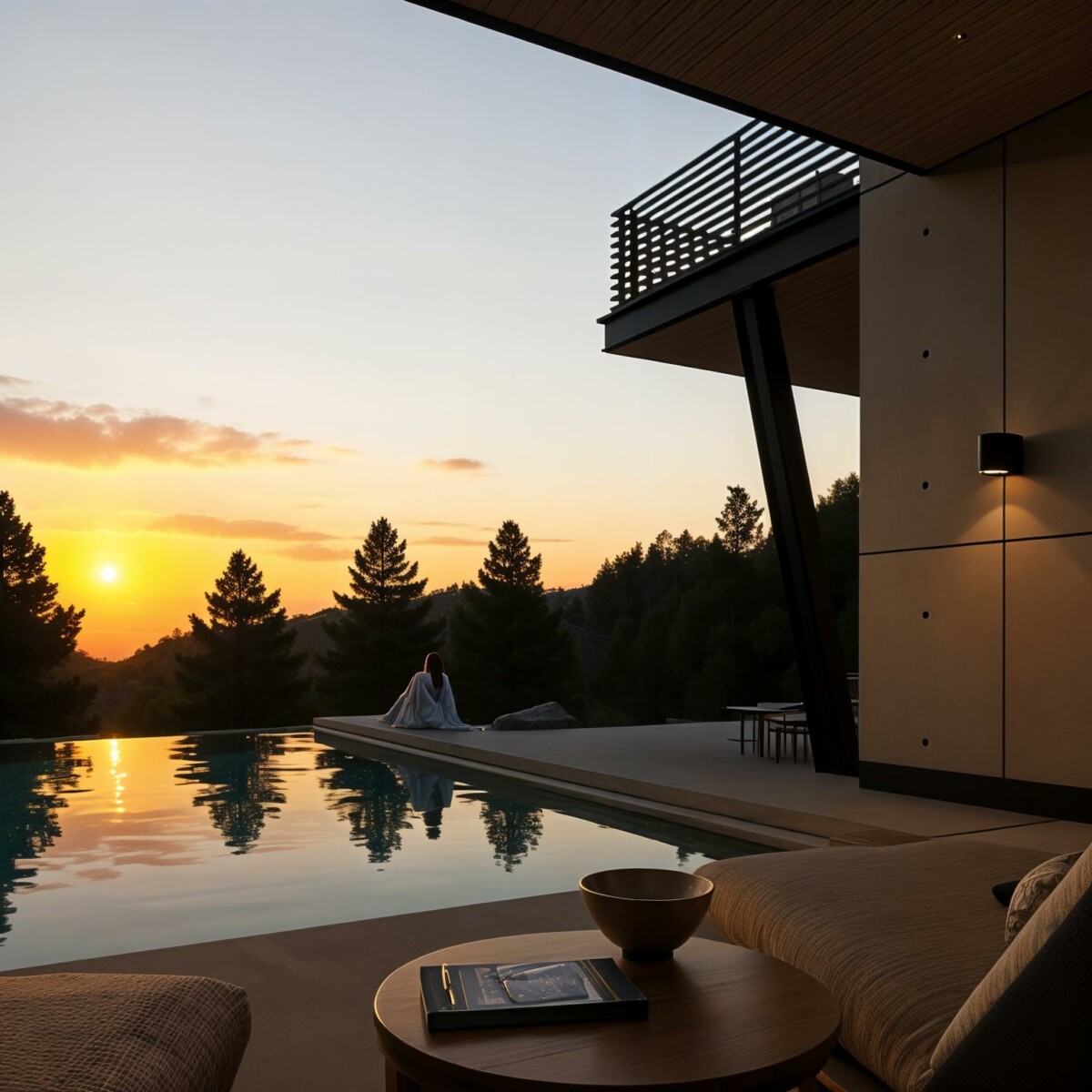 The architectural layout is designed to maximize panoramic views in all directions: to the south, it opens toward the valley, while to the north, it frames the surrounding mountain peaks. The central core—housing the main entrance and a dramatic double-height great room—is surrounded by four secondary volumes, each tilted in a different direction to frame specific focal points in the landscape.
