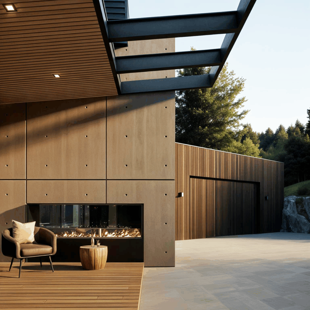 The residence is a striking 14,500-square-foot architectural volume set in the mountains of Utah. It rises from the terrain as a monolithic layering of stone, appearing to emerge organically from the ground and ascend along the slope above Park City.